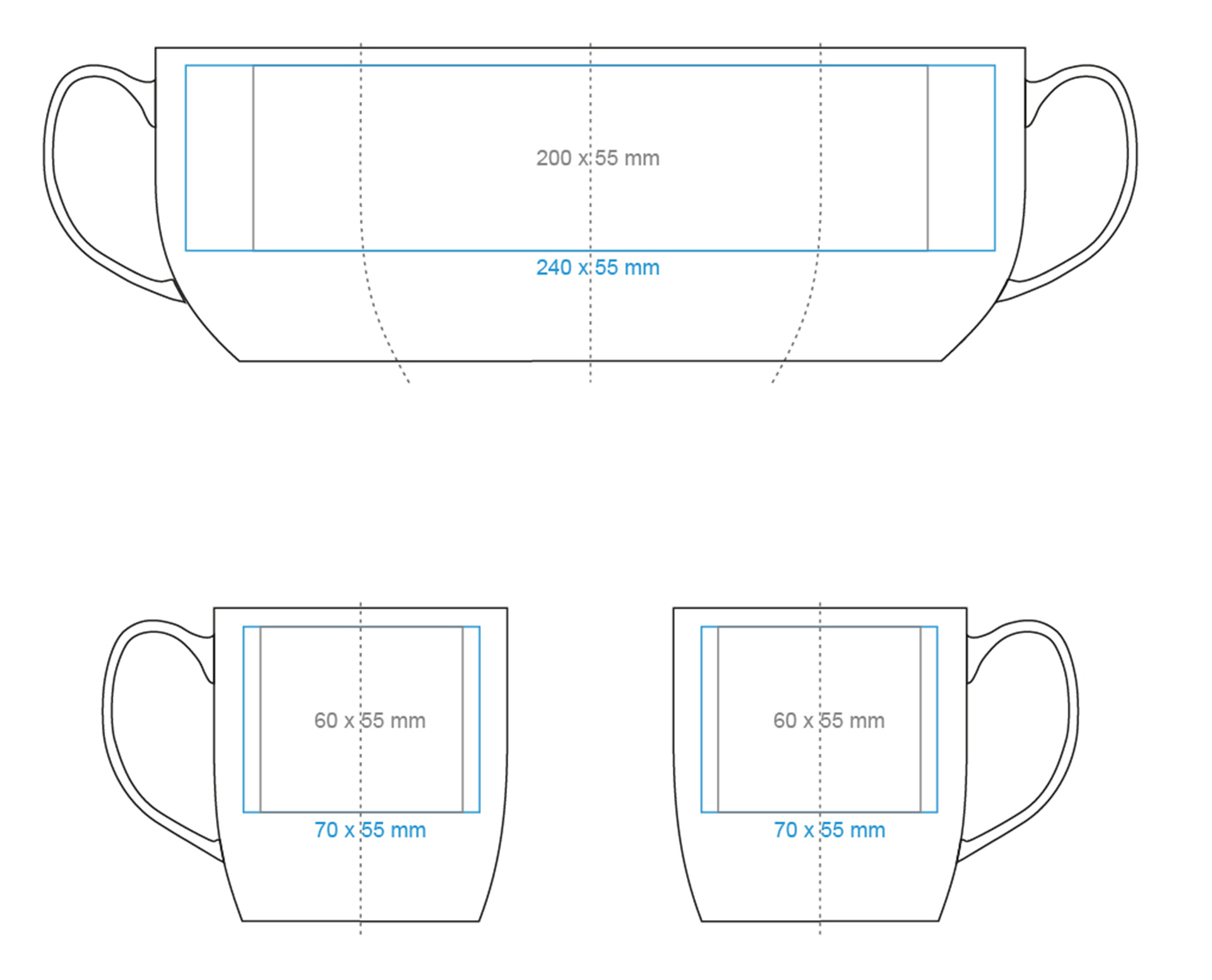 | Dostępne zdobienia dodatkowe Nadruk wewnątrz (ścianka) Nadruk na dnie (wewn.) (ø40 mm) Nadruk na spodzie (zewn.) (ø50 mm) Nadruk na uchu (50×10 mm) Personalizacja Nadruk złotem Nadruk srebrem Zdobienie powierzchni obłej Nadruk tablicowy Nadruk przez rant Hand Made – malowanie rantu Termo Ink |