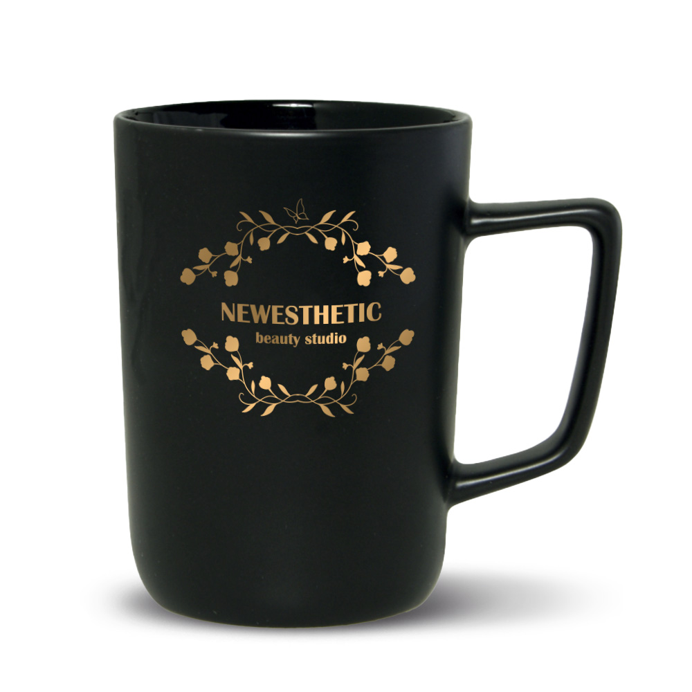 Cylindryczny kształt oraz wygodne, duże ucho. Kubek może być barwiony w kolorach dostępnych w ofercie podstawowej oraz wg wybranego koloru Pantone.