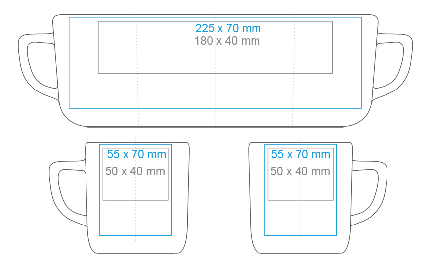 | Dostępne zdobienia dodatkowe Nadruk na uchu (40×10 mm) Nadruk wewnątrz (ścianka) (60×15 mm) Nadruk na dnie (wewn.) (ø30 mm) Nadruk na spodzie (zewn.) (ø40 mm) Nadruk przez rant Personalizacja Termo Ink |