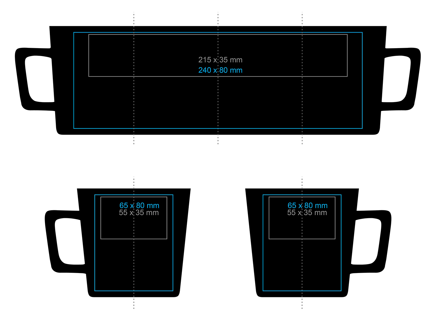 | Dostępne zdobienia dodatkowe Nadruk na uchu (70×12 mm) Nadruk wewnątrz (ścianka) (50×20 mm) Nadruk na dnie (wewn.) (ø45 mm) Nadruk na spodzie (zewn.) (ø45 mm) Zdobienie paskiem Personalizacja Nadruk przez rant Hand Made – malowanie rantu Personalizacja grawerem |