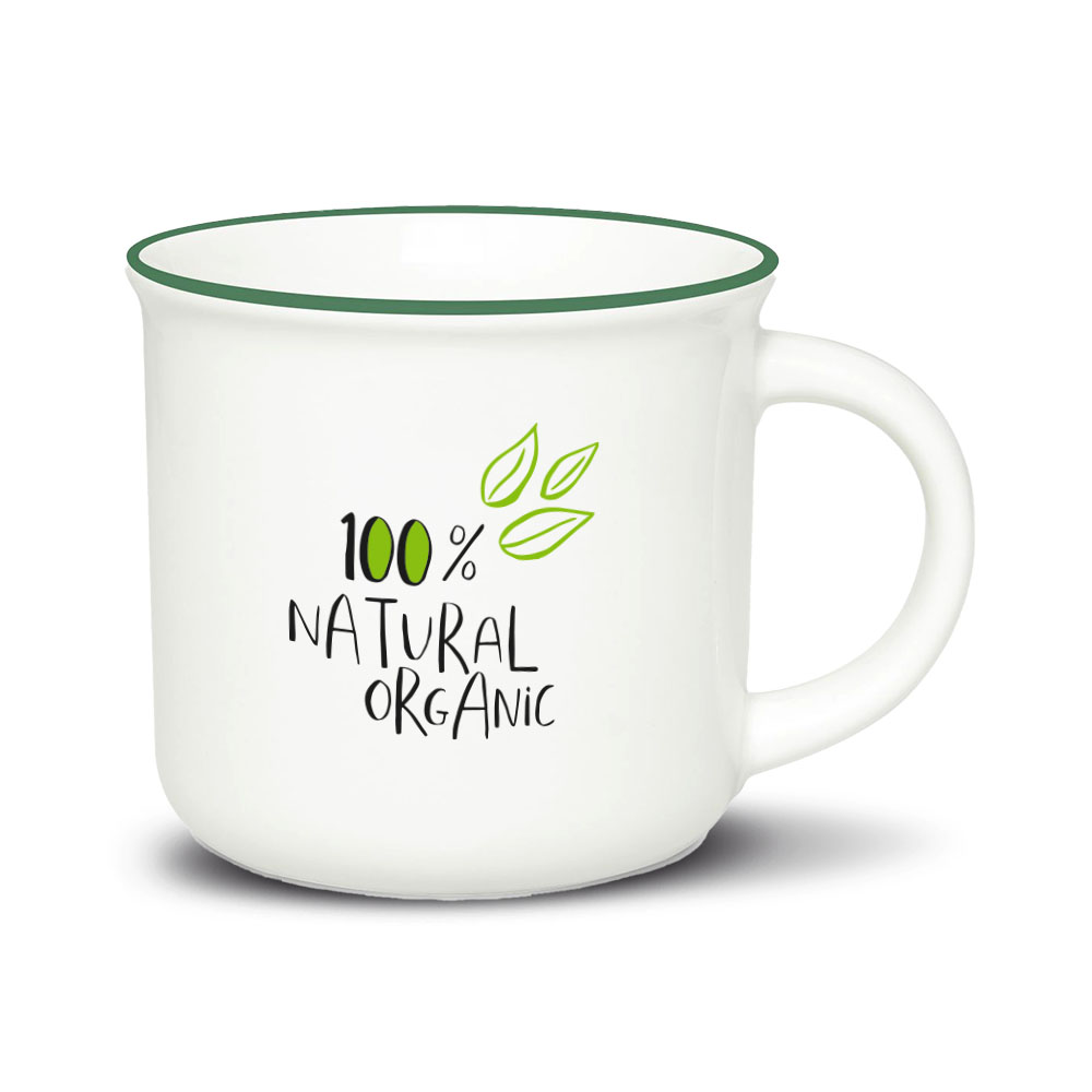 Kubek kremowo-biały o kształcie inspirowanym tradycyjnymi kubkami emaliowanymi.  Wyjątkową wygodę picia zapewnia wywinięta krawędź oraz wygodne ucho.